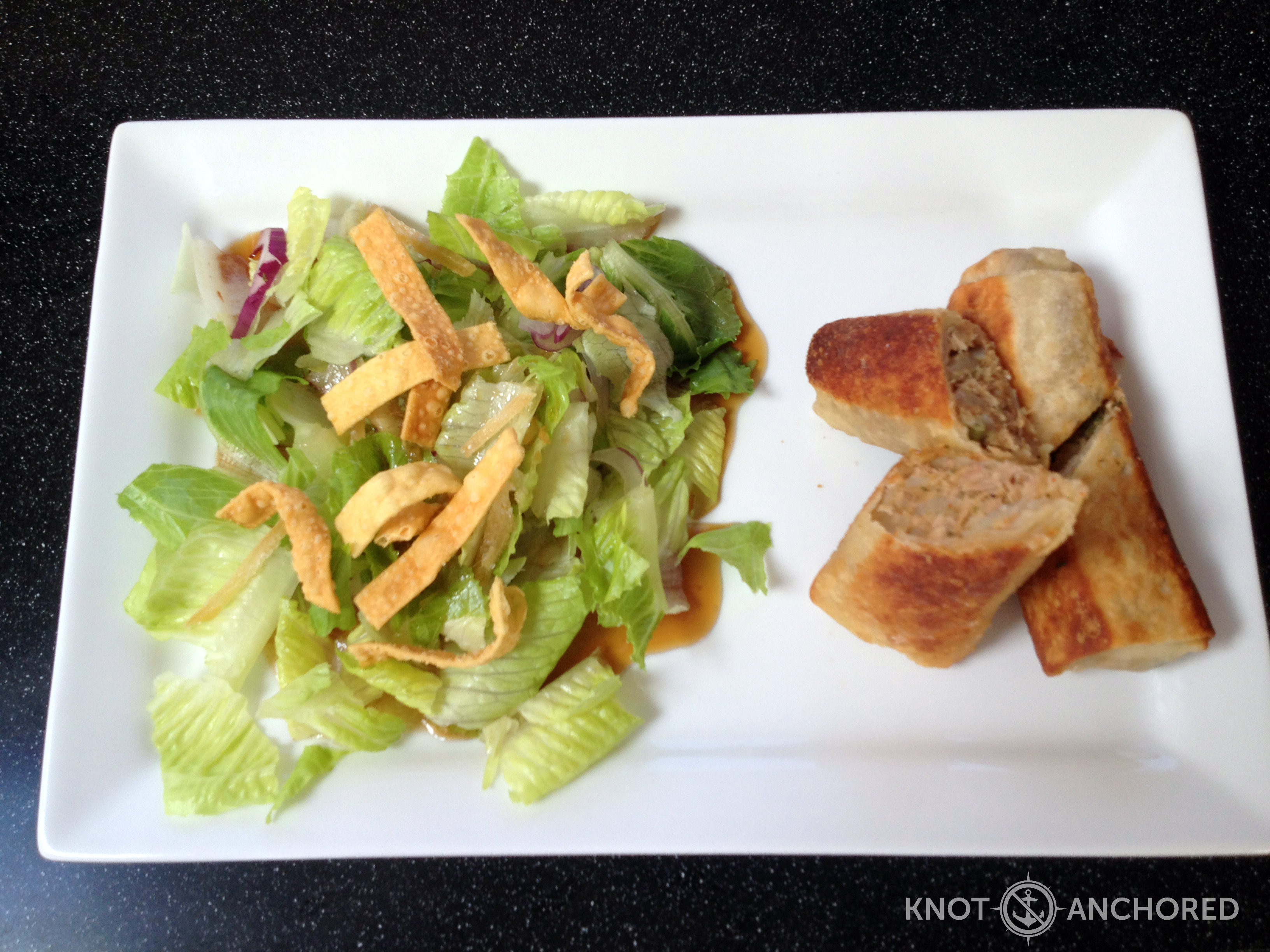 These our Knot Anchored’s Moroccan Egg Rolls with Ginger Salad.