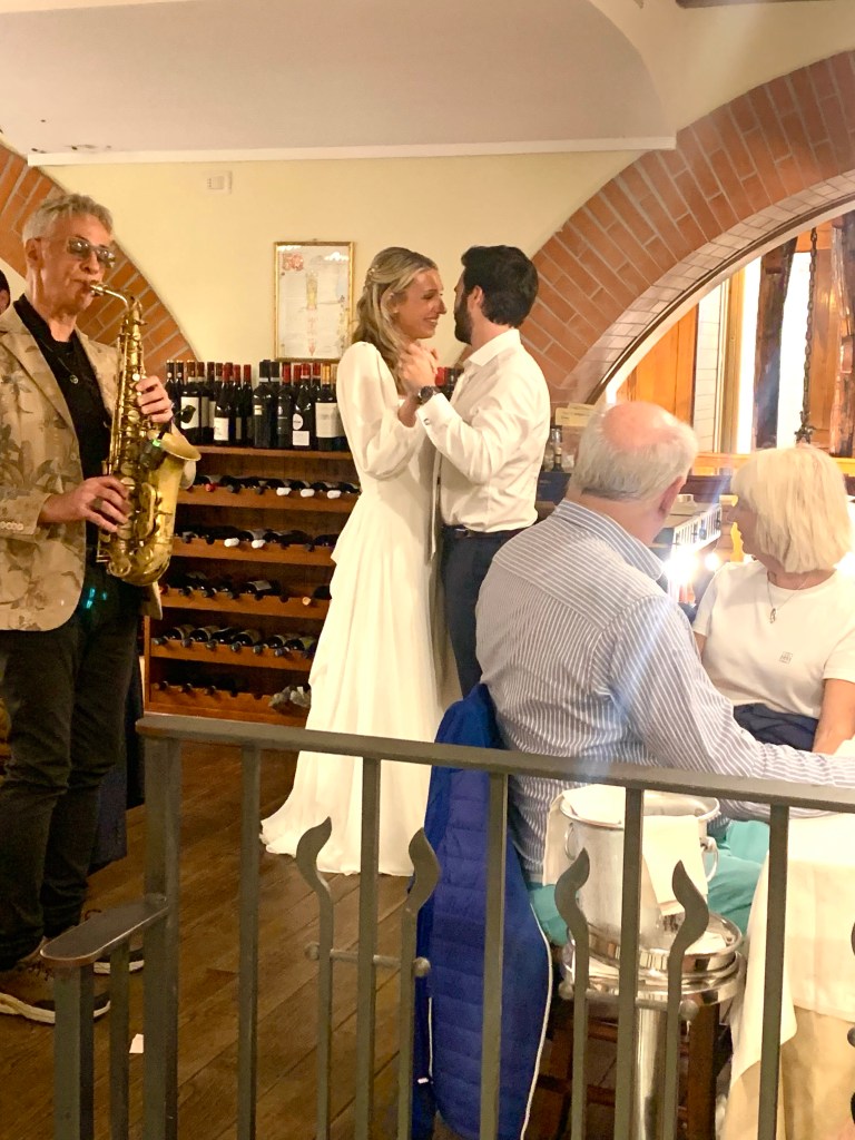While we were enduring our food, to the left of us, this beautiful love story was going on complete with saxophone player.